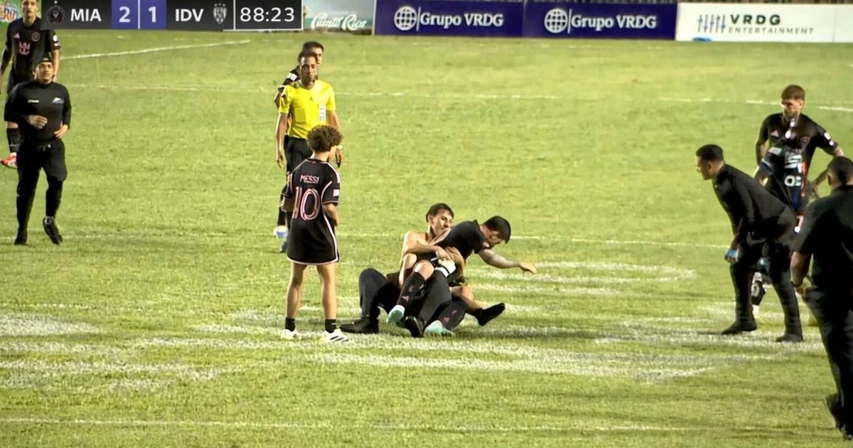 Insólito: en medio del partido, un hincha y un seguridad tiraron a Messi al piso